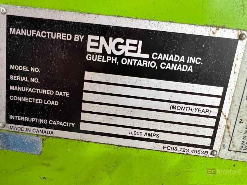 Engel TG 2550/500 US Injection Molding Machine, s/n 156459, (2005), 15,000-Hours on Meter, Note: Machine Only - No Auxiliary Equipment Pictured is Included in the Lot, Please Note rigging/loading for this machine onto buyer's truck is $3,200 by Chicago Industrial