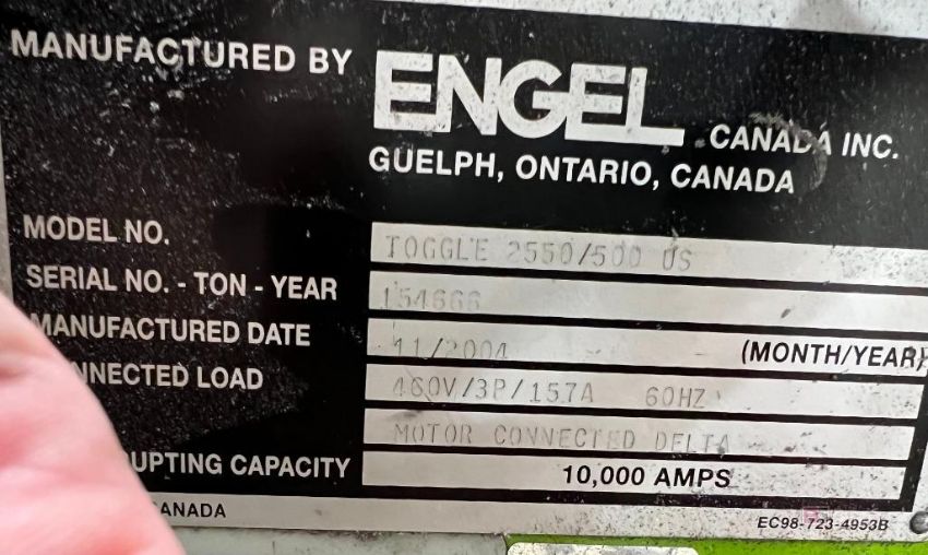 Engel TG 2550/500 US Injection Molding Machine, s/n 154666, (2004), 108,000-Hours On Meter, Note: Machine Only - No Auxiliary Equipment Pictured is Included in the Lot, Please Note rigging/loading for this machine onto buyer's truck is $3,200 by Chicago Industrial