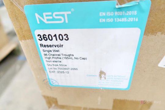 Pallet of Approx. (10) Cases of Nest Scientific Single Well Reagent Reservoir, 96-Channel Trough, Non-Sterile, REF 360103