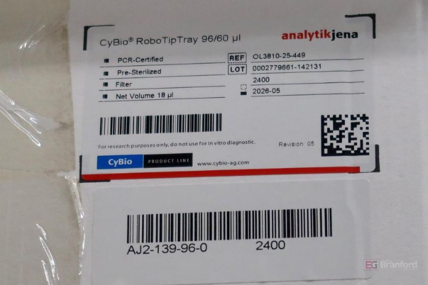 (22) Pallets of Analytik Jena CyBio RoboTip Trays 96/60 ul, PCR-Certified, Pre-Sterilized, Filtered, REF OL3810-25-449