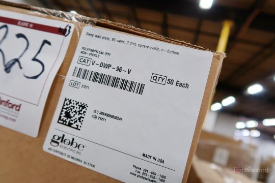 Pallet of Approx. (63) Cases of Globe Scientific Deep Well Plates, 96 Well, 2.2ml Square Wells, V-Bottom, CAT V-DWP-96-V