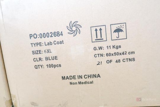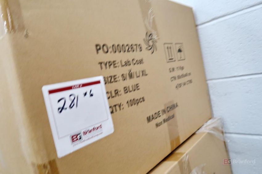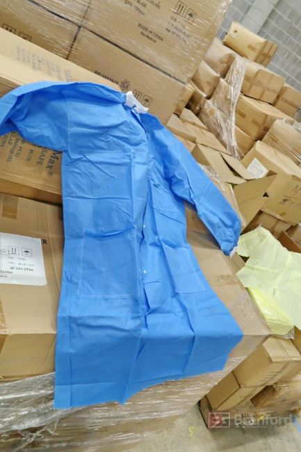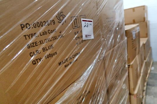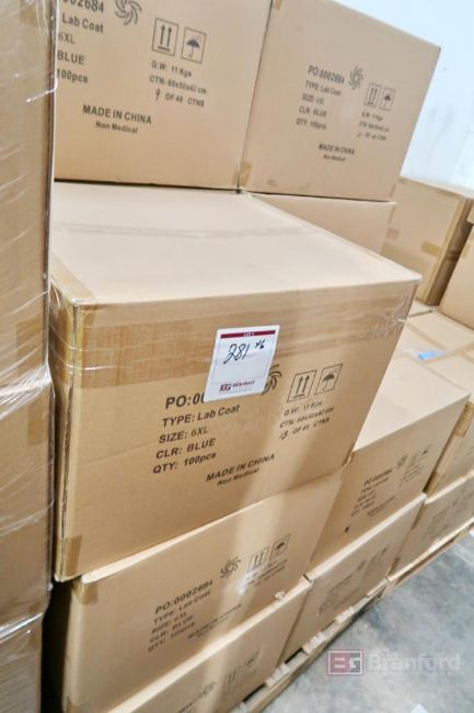 (8) Pallets of Blue Lab Coats, Various Sizes
