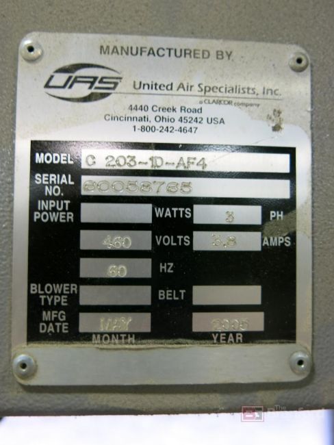 UAS United Air Specialists Model C 203-1D-AF4, 4-Bag Dust Collector, 2005, S/N 60058765