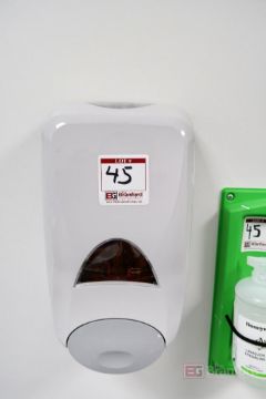 Waste Container, Paper Towel dispenser, Mop, Soap and eyewash station