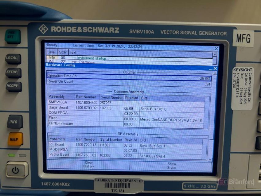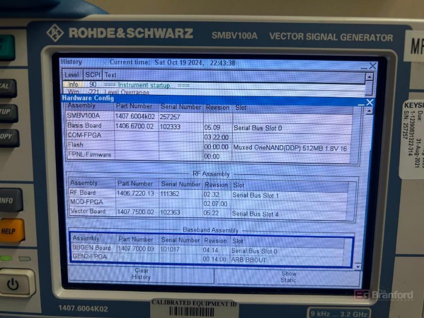 Rohde & Schwarz SMBV100A Vector Signal Generator; OPT: SMBV-B51, SMBV-B103; 9 kHz - 3.2 GHz