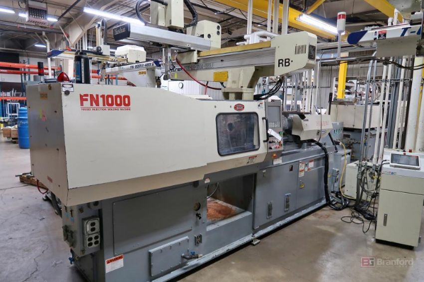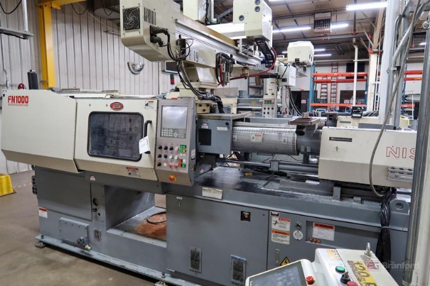 Nissei FN1000 90-Ton x 3.17-Oz Injection Molding Machine, S/N S08W074, 2002; w/ 3-Axis Yushin Netliner Robot Model VNII-EA-1508-HS3.0, Rigging for this lot is $1700, WITH ROBOT PALLETIZED