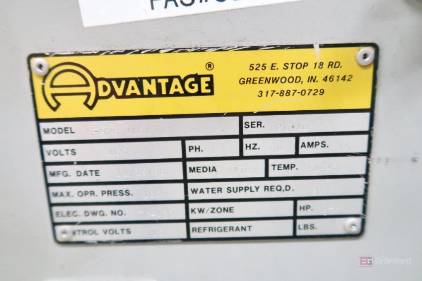 Sentra Advantage Temperature Control Model S-925-41C1, S/N 26320, Rigging for this lot is $25, AS-IS additional charge for palletizing