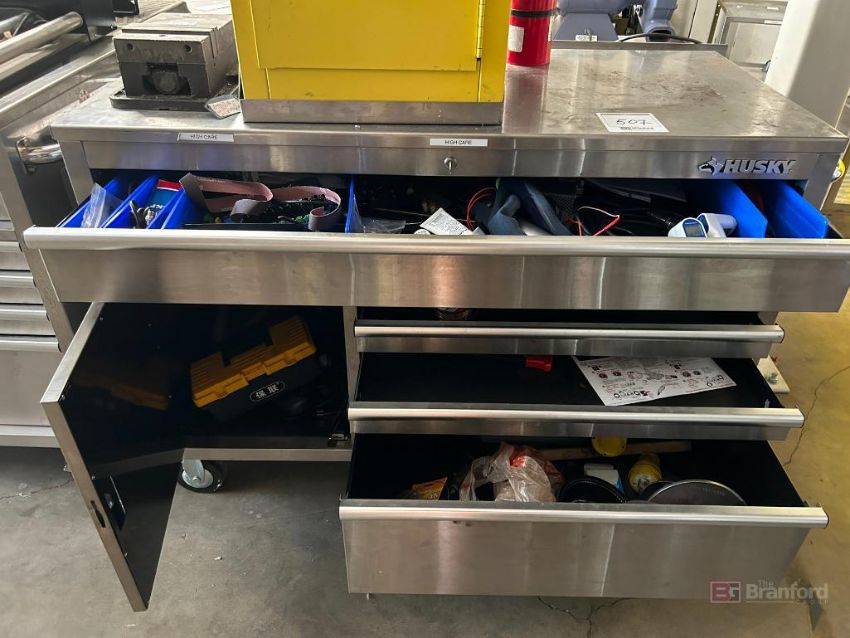 Husky Rolling Toolbox on Locking Casters with Contents; Includes Securall Flammable Storage Cabinet