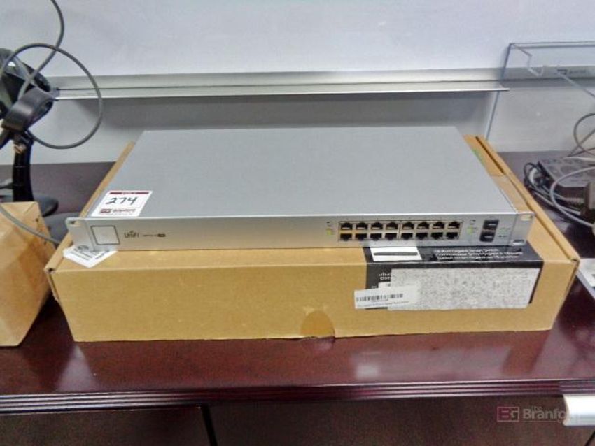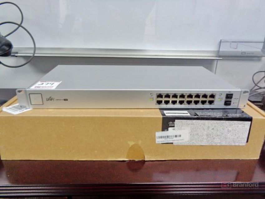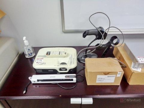 Lot of Video Conferencing and Networking IT Equipment; Including Logitech MeetUp Video Conferencing System, Ubiquiti UniFi Switch 16 US-16-150W Switch, Cisco SG200-18 18-Port Gigabit Smart Switch, Honeywell 1250G-2USB-N Scanner, Zebra DS22 Scanner, Epson H592A LCD Projector, Epson DS-80W Scanner
