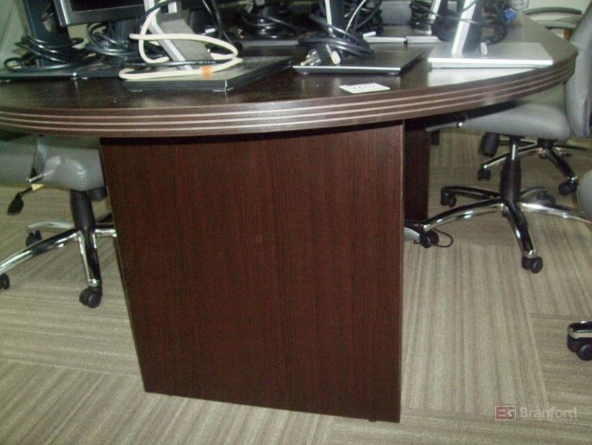 Lot of 10' Conference Table, (6) Leather Swivel Chairs, Plastic Folding Table