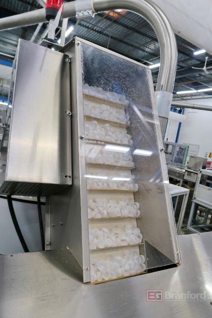 Plastic Bottle Cap Finishing System, Including: S.A. Grillet Daniel Incline Conveyor, Green Box Cap Cooler, PSG PackSys Global SFG 2 Cap Hopper/Elevator, PSG PackSys Global RF 1-H, Astromecag CH-3074 Muri Serpentine Accumulator Conveyor, IMD Vista Electrode EFK12 Spark Tester, PSG MSM 5-FSH Folder/Slitter, IMD CapMaster Closure Testing System, PTSE Material Blower H100/2 G1G-R