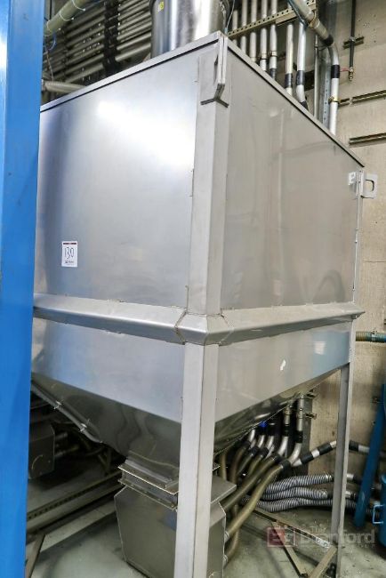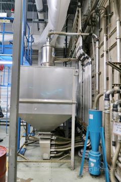 Lot of Resin Handling Equipment Including (2) Hoppers/Day Bins, (3) Vacuum Pumps, Pipes, (3) Filters, Valves, Controllers; Note Buyer is Not Required to Remove Piping