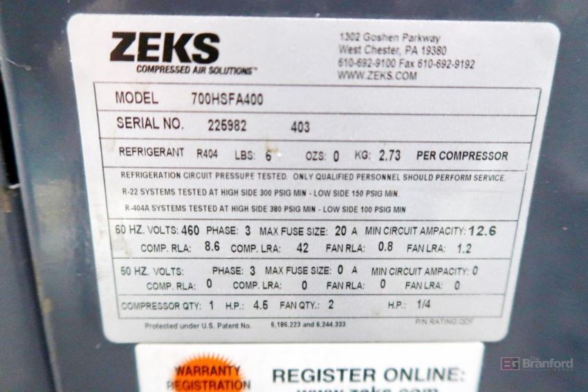 Zeks 700HSFA400 Air Dryer, 460V 3 PH