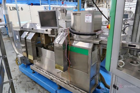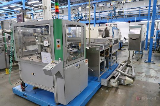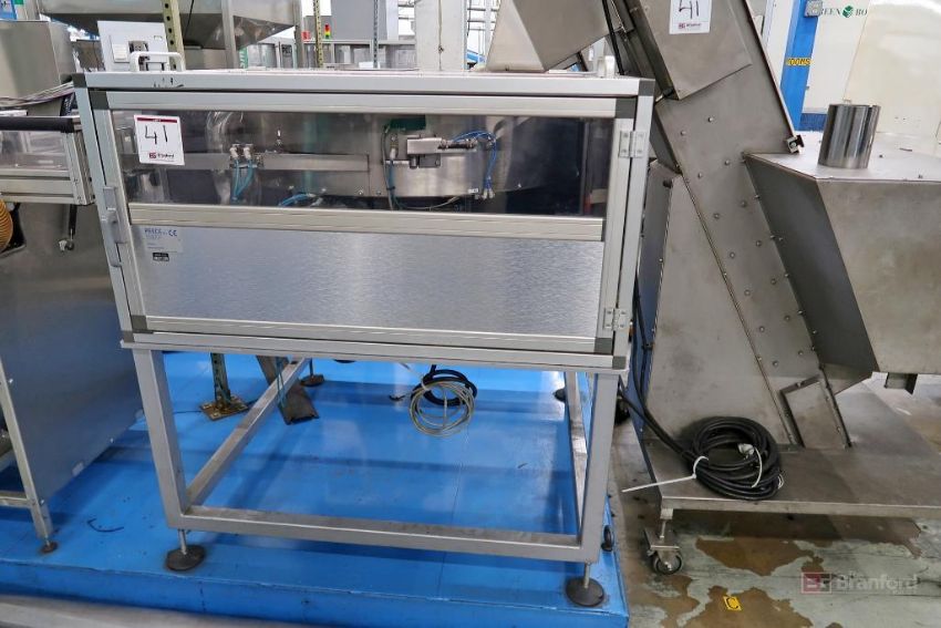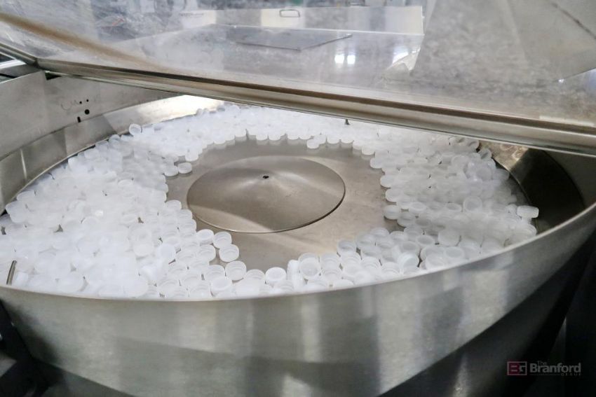 Plastic Bottle Cap Finishing System, Including: S.A. Grillet Daniel Incline Conveyor, Green Box Cap Cooler, PSG PackSys Global SFG 2 Cap Hopper/Elevator, PESCE Sorter, PSG Jetstream Serpentine Accumulator Conveyor, IMD Vista Electrode BTA52 Spark Tester, PSG MSM 6-SF Folder/Slitter, IMD Vista Closure Testing System, PTSE Material Blower H100/2 G1G-R