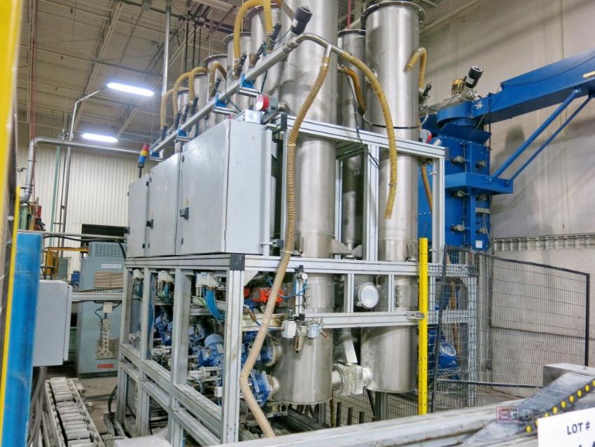 Moriyama Rubber Compounding / Mixing Line, complete w/ Color Service Chemical Doser Model Portal 1 Management, Batch Off Machine, Dual Conveyor Rubber Cutter, Load Cells, Rubber Inclined Conveyor; Moriyama Model DX55-215MWA-S Dispersion Mixer 55-Liter, 215-HP w/ Checkweight System; Moriyama SPM-75NB Sheet Preformer/Extruder, Moriyama Model CLI Cutting Unit, Moriyama SLI Slitting Unit, Adjustable Width; w/ UMD Automated Batch-Off & Festoon Drying Rack, Anti-cake Applicator, Wigwagger, Eriez Metal Detector, Dropout Conveyor, 2015