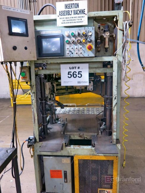 Custom Made Insertion Assembly Machine w/ Stud Insertion Unit, Safety Controls, (2) Mitsubishi GOT2000 Digital Displays, (1) Mitsubishi GOT 1000 Display, Label Dispenser on Sliding Rack, Exit Conveyor