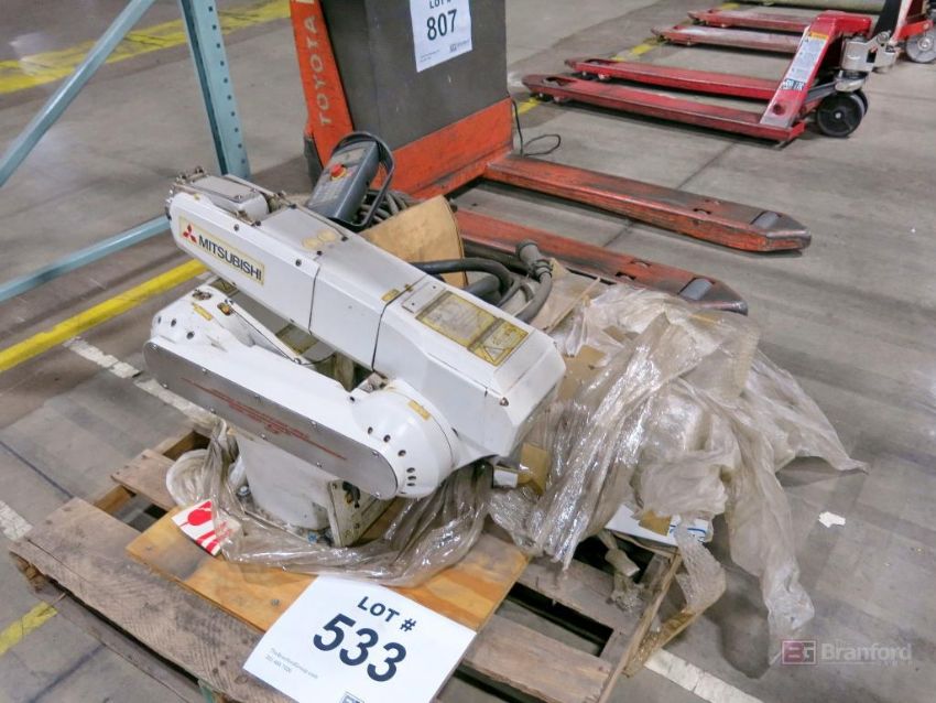Mitsubishi MELFA RV-65SDL Robot w/ (2) Mitsubishi Model HG1U-SB12JK-HK1382-S7 Hand Held Control Pendants, Mitsubishi Control Box