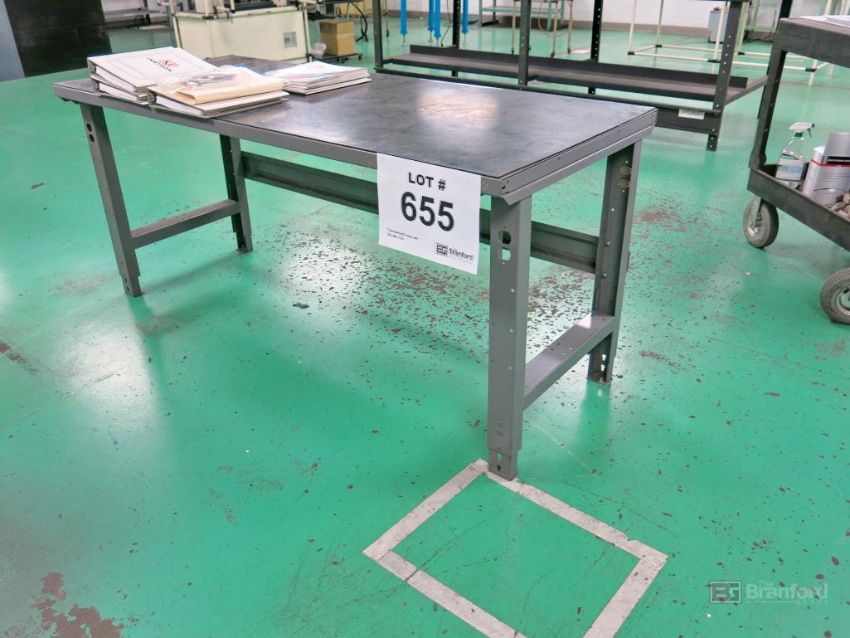 Large Heavy Duty Steel Layout Table w/ No. 3 Arbor Press, 8" Benchtop Vise, Steel 72" Table