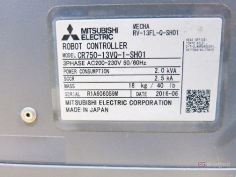 Mitsubishi Model MELFA RV-13FLQ Robot w/ Hand Held Control Pendant, Model HG1U-SV12JH-MK1382S7, Control Box Model CR750-13VQ-1-SH01