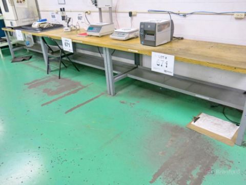 Lot of (5) Butcher Block Topped Steel Framed Workbenches