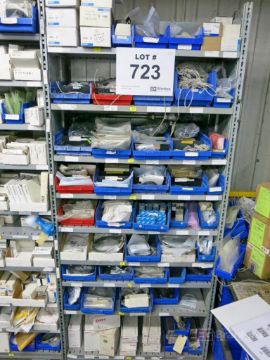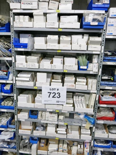 (3) Schafer Racks w/ Contents Incl But Not Limited To: Numerous Keyence Parts, Thermocouple Wire, Connectors, O-Rings, Nagara Switches, Numerous Other Industrial Related Items Please Inspect
