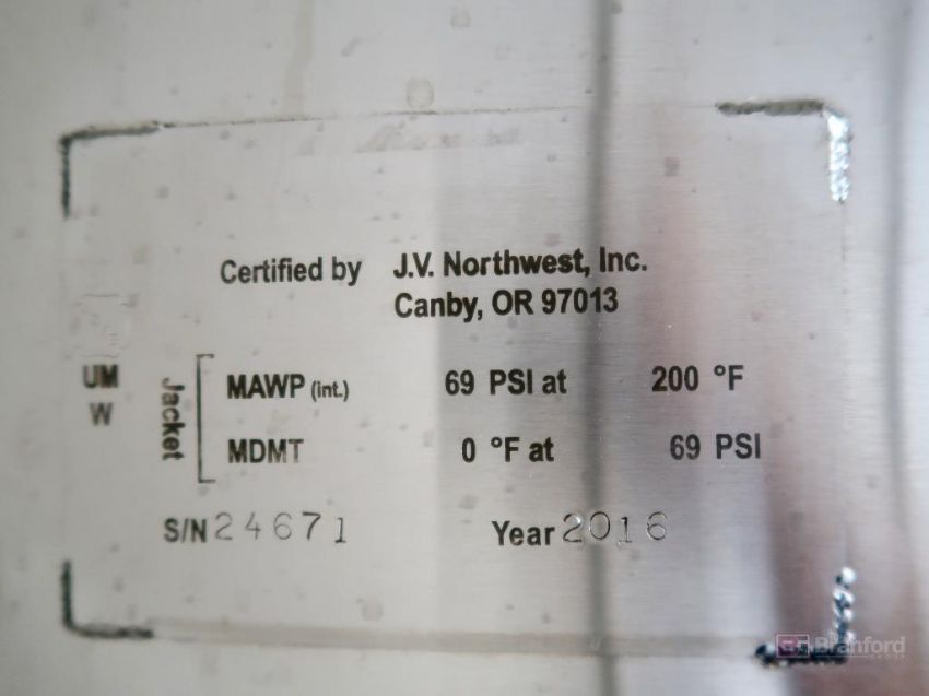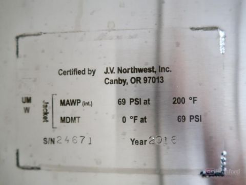 JVNW 60 BBL S/S Fermenter Tank, S/N 24671, 2016, approx 140" H