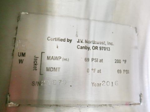 JVNW 60 BBL S/S Fermenter Tank, S/N 24670, 2016, approx 140" H