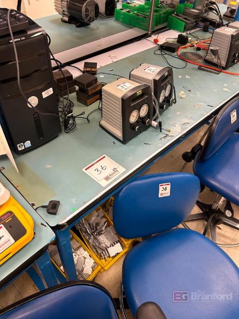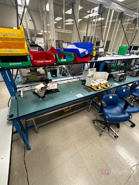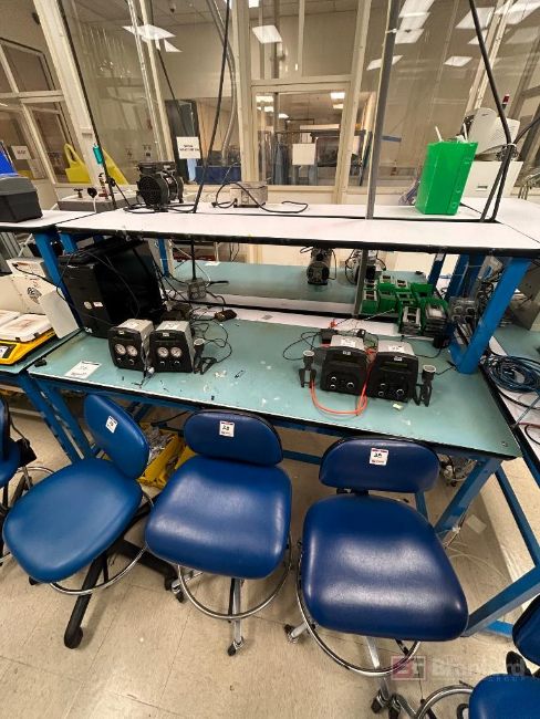 (2) 6' Long Industrial Workbenches w/ ESD Mats; Overhead Shelves