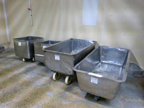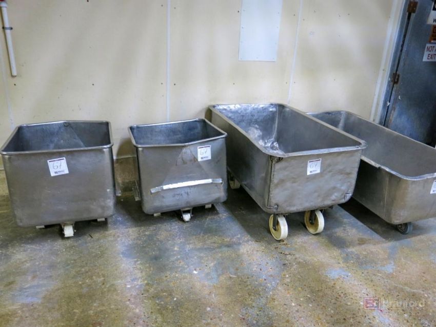 (3) Stainless Steel Castered Totes and buggies