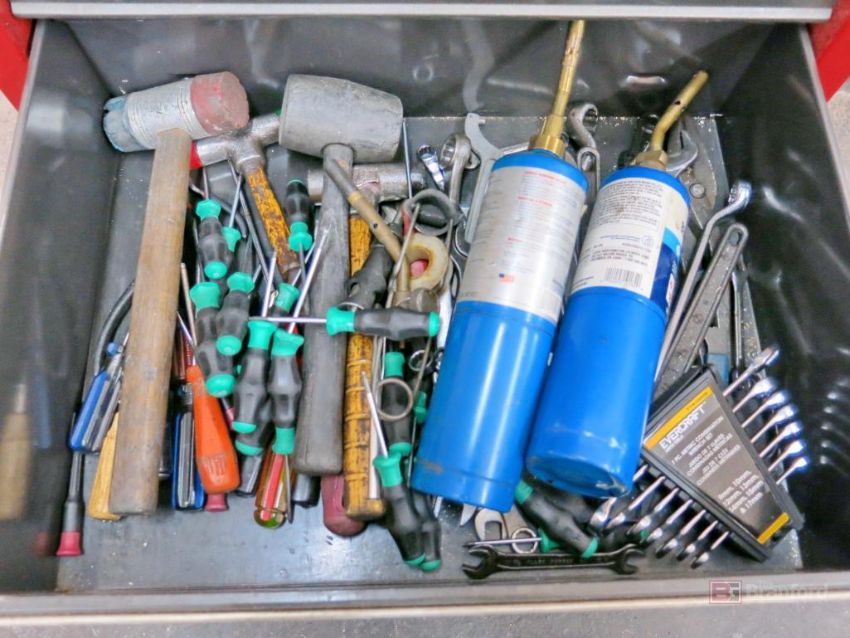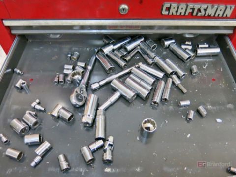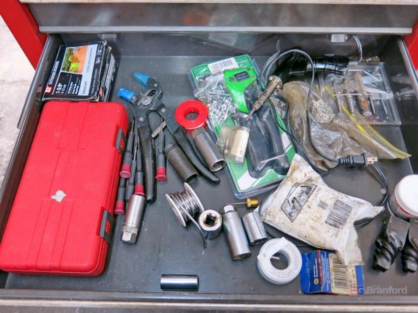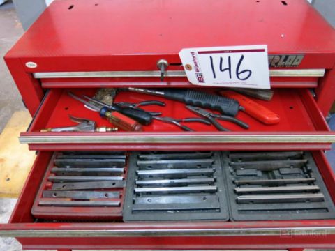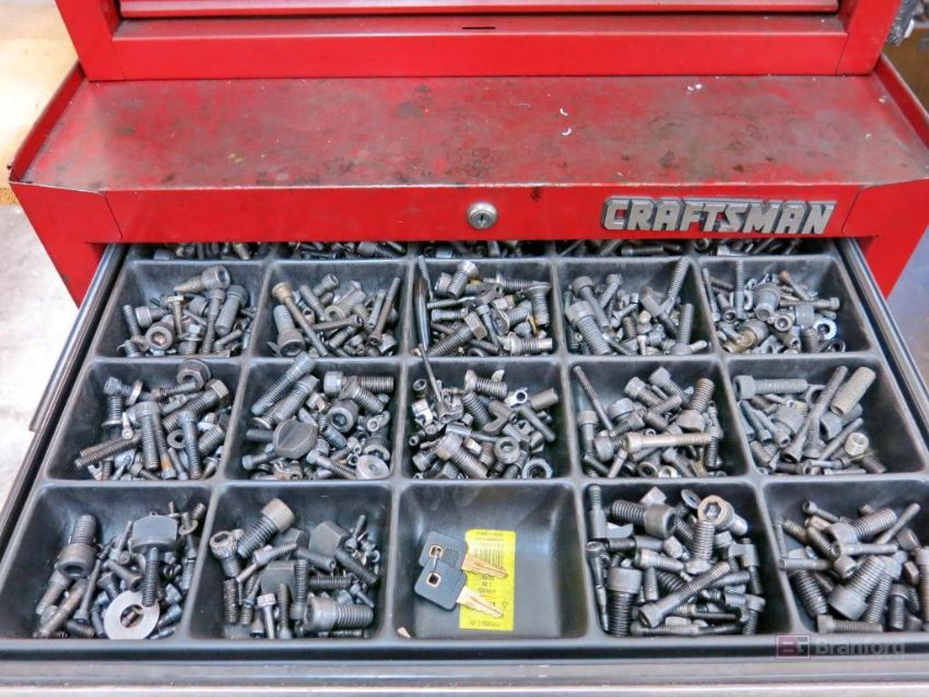 Waterloo 3-Drawer Toolbox, Craftsman 8-Drawer Rollabout Machinist Toolbox w/ Contents Incl Parallels, Hand Tools, Nuts, Bolts, Screws, Sockets, Cutting Bits, Allen Wrenches
