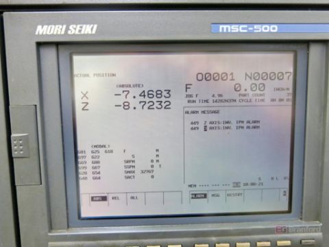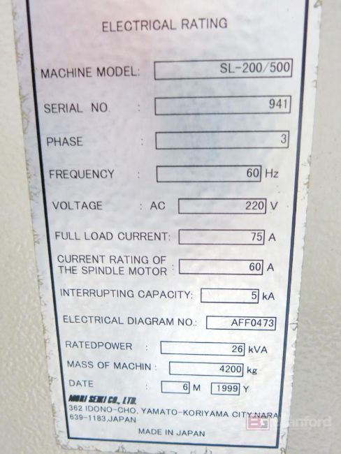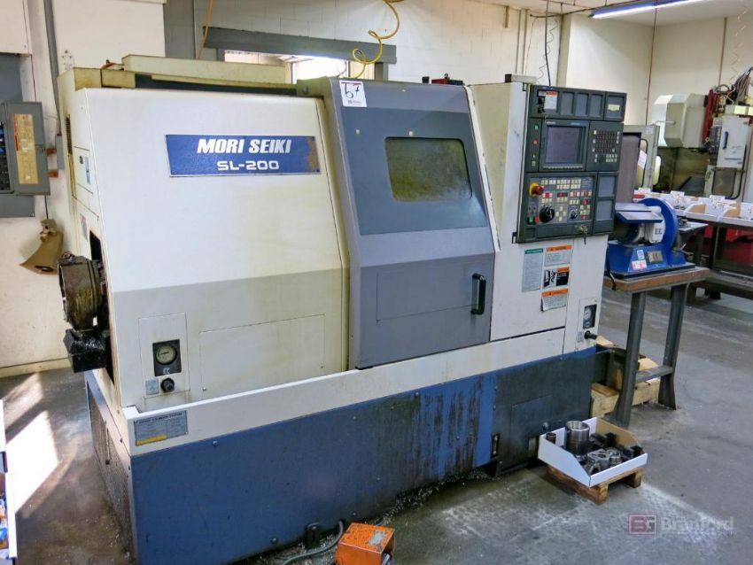 Mori Seiki Model SL200 CNC Lathe, w/ 12-Position Toolholding Carousel, 8" 3-Jaw Chuck, Tailstock, Bullnose, Assoc. Static Tooling, Mori Seiki Model MSC500 CNC Controls, Max. RPM 4000 Min -1, Cylinder Type ZKP150/60, S/N 941 - Please Note May Need Drive Repairs