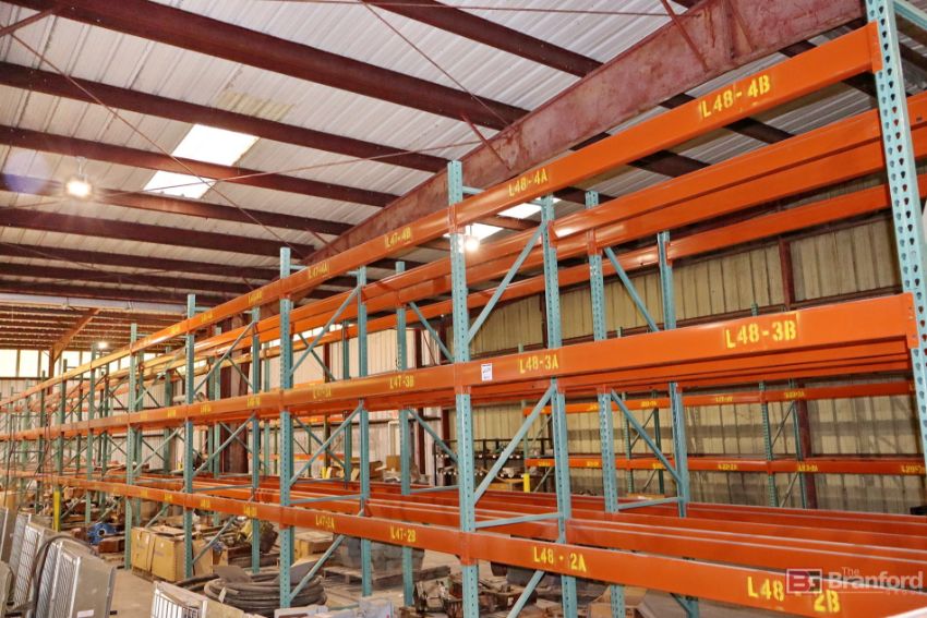 (51) Sections of Pallet Racking, no contents ***Please Note - A fee of $1000 will be charged for this lot to dismantle, band, and load.
