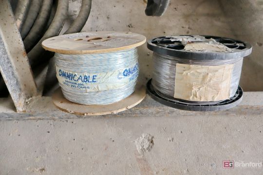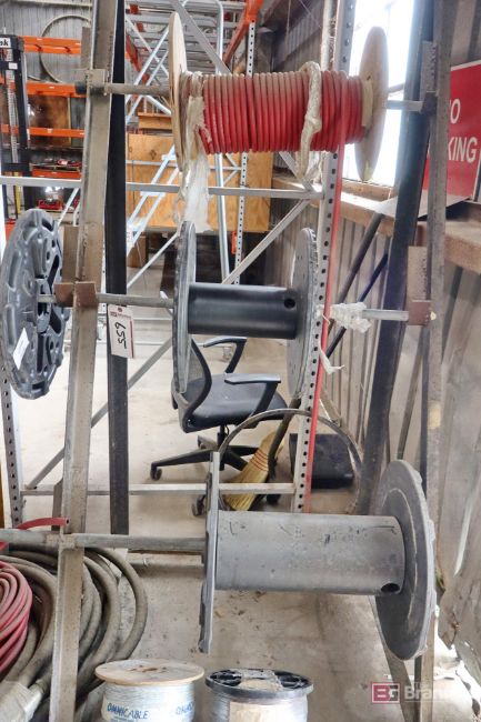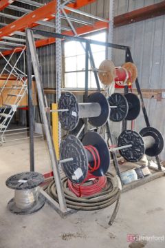 Rack with spools of cables and hose ***Please Note - A loading fee of $100 will be charged for this lot, if additional packing is needed please contact rigger directly.