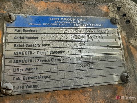 Gen Group model SML5060B2S, S/N 1245754494, 50-Ton C-Hook Crane Lift ***Please Note - A loading fee of $250 will be charged for this lot, if additional packing is needed please contact rigger directly.