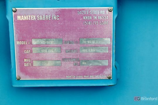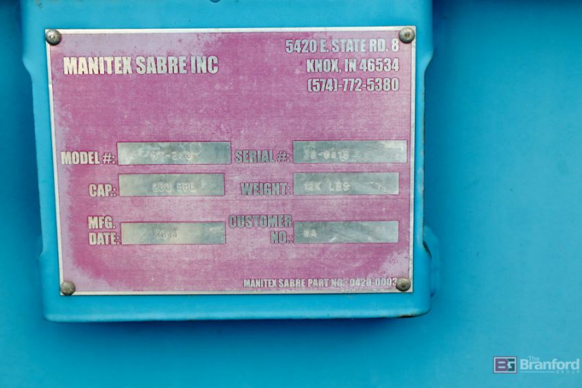 Manitex Sabre model MT-240 roll off smooth wall mini frac tank, yr 2014 ***Please Note - A loading fee of $250 will be charged for this lot, if additional packing is needed please contact rigger directly.