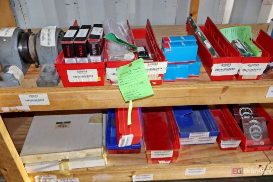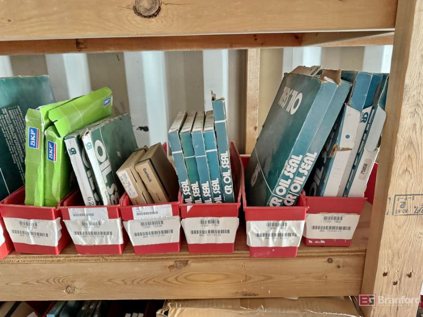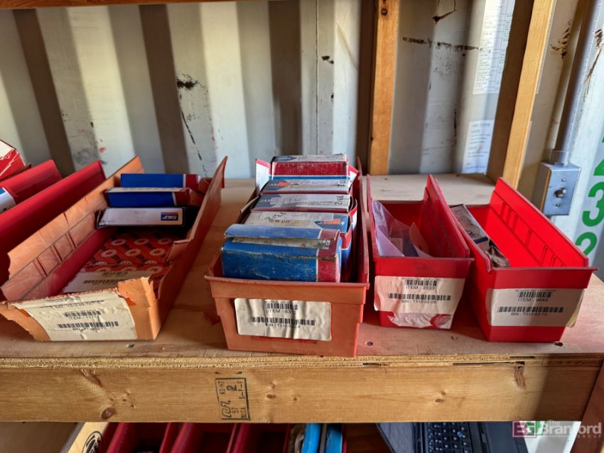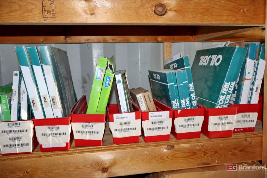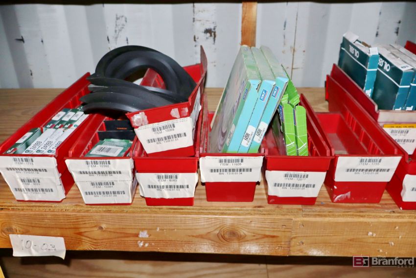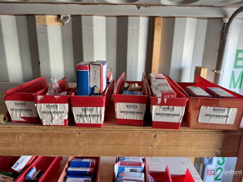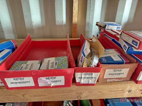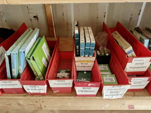 Contents of racks including miscellaneous boxes of bearings, small to large oil filters, seals, head swivel, etc - Please inspect for more details ***Please Note - A loading fee of $100 will be charged for this lot, if additional packing is needed please contact rigger directly.
