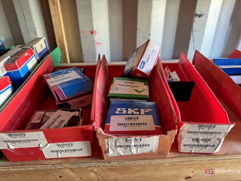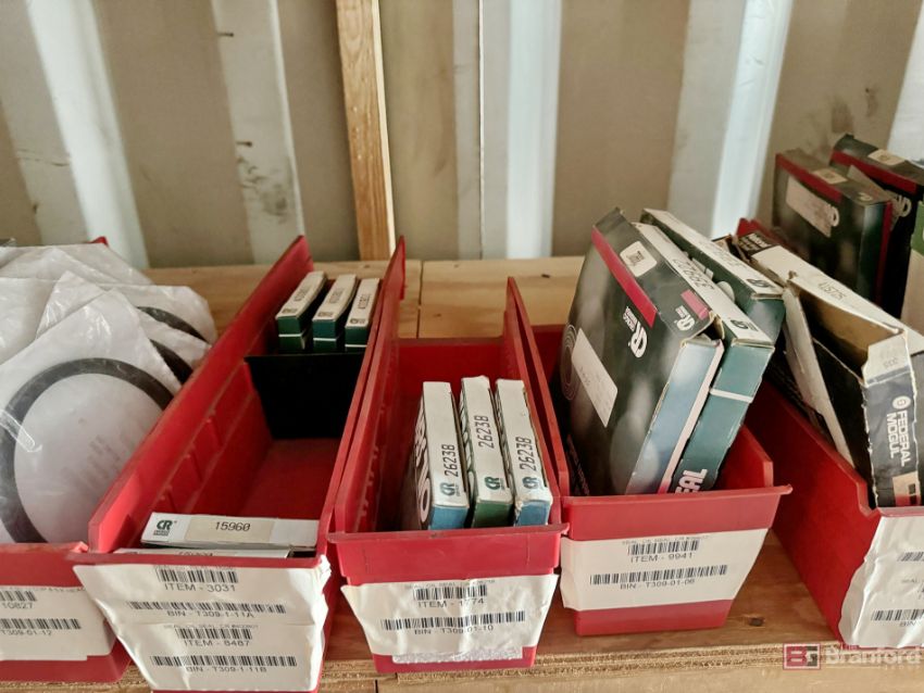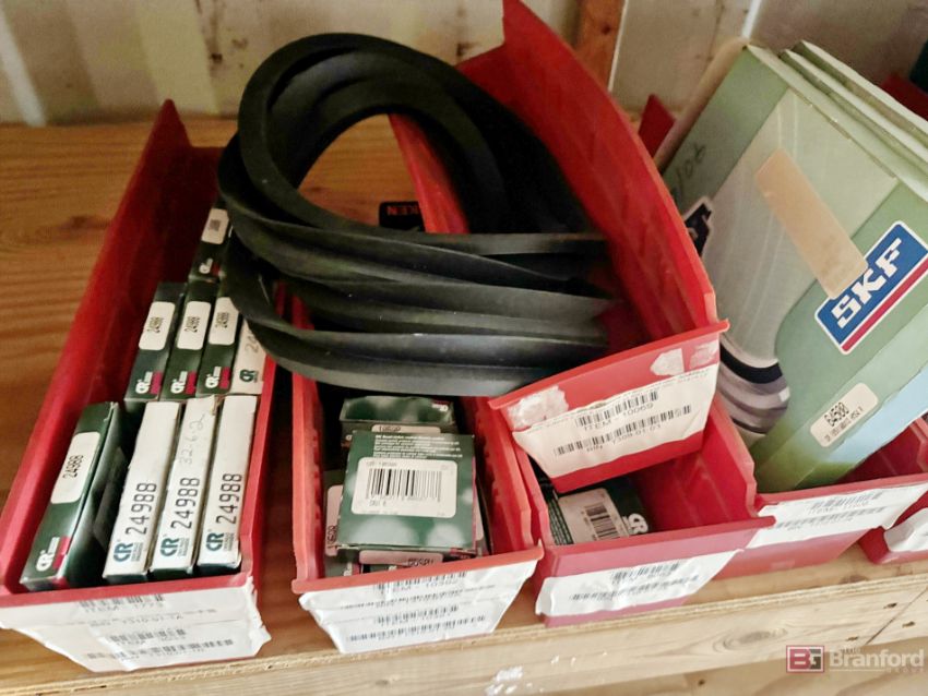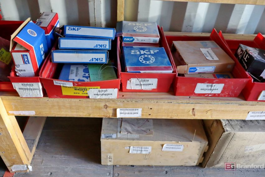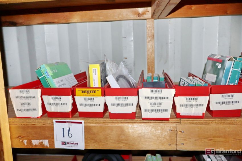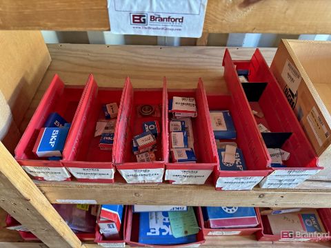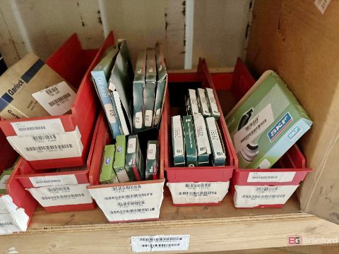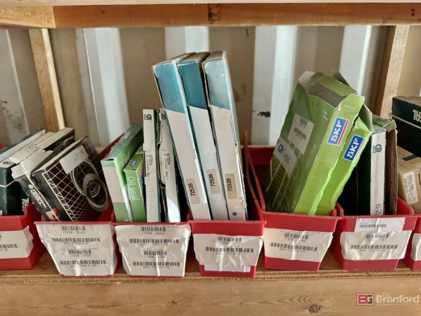 Contents of racks including miscellaneous boxes of bearings, small to large oil filters, seals, head swivel, etc - Please inspect for more details ***Please Note - A loading fee of $100 will be charged for this lot, if additional packing is needed please contact rigger directly.