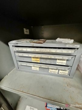 Cabinet w/ Protective Shields, Thermal Transfer for Zebra, Shelf, Hand Activated Paper Towel Dispensers, ReaJet Print Heads, Box of Tags, Shelf Unit w/ Small Scale, Packing Tape Guns, Empty Cabinet ***Please Note - A loading fee of $50 will be charged for this lot, if additional packing is needed please contact rigger directly.