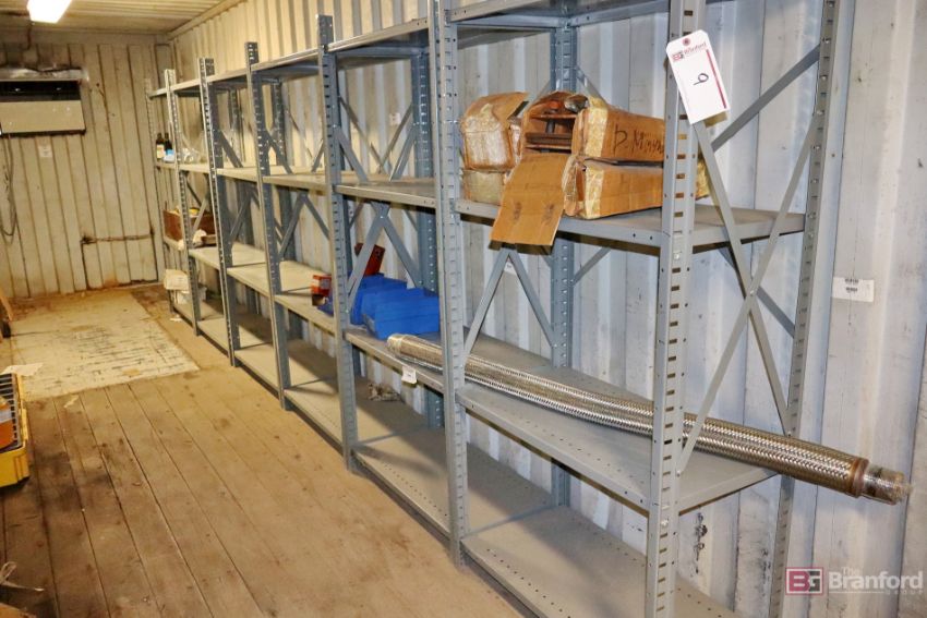 (6) Metal Shelves & Contents, Brass Shims, Grinding Wheels, Washers, Metal Brackets ***Please Note - A loading fee of $50 will be charged for this lot, if additional packing is needed please contact rigger directly.