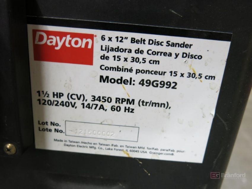 Dayton 6 x 12" Belt Disc Sander, Model 49G992