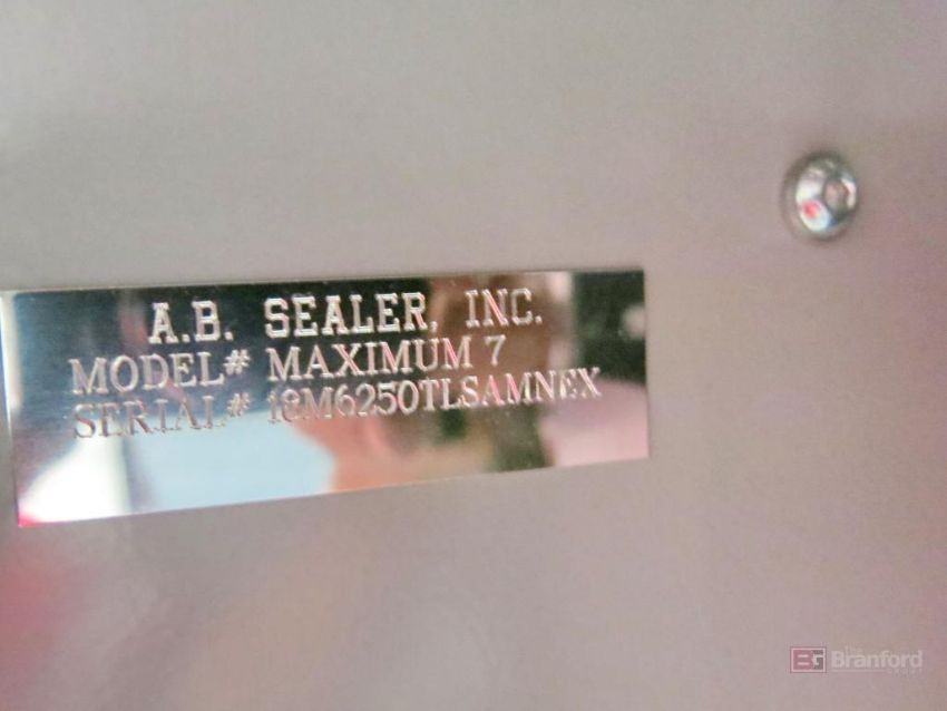 AB Sealer Inc. Model Maxium 7 Case Erector Machine, w/ Taping Unit, Adjustable Box Size, Upper Striper, S/N 18M6250TTSAMNEX, : Case sizes: 8″ Minimum - 24″ Maximum Width, 37″ Maximum Height, 46″ Maximum KD case (L + W)