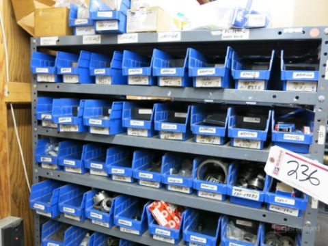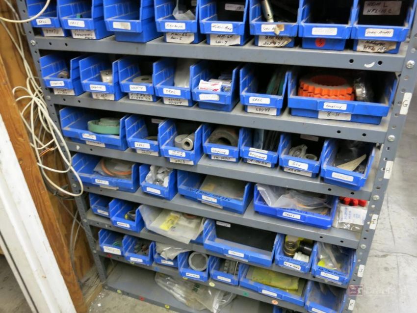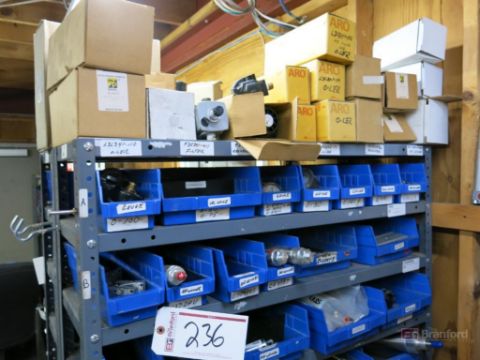 (2) Medium Duty Racks w/ Contents Incl But Not Limited To: Air Cylinders, Vacuum Gauges, Air Filters, Seals, Bearings, Other Industrial Related Items - Please Inspect