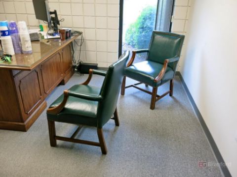 { Group of lots: 368, 369, 370, 371, 372 } Contents of Office Incl Executive Wood Desk, (2) Credenzas, (4) Office Chairs - Please Note: Contents in Office Not Incl, Furniture Only!