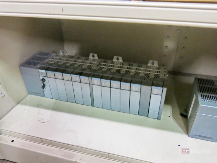 2-Door Metal Cabinet w/ Contents Incl But Not Limited To: Allen Bradley Parts Incl Servo Units, Driver Units, Power Traps, Micrologics, Control Parts - Please Inspect