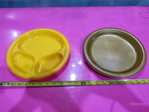 10" Plate Thermoforming Mold, Rope Design Edge Insert, 3-Section Divided Plate Inserts; w/ Freeman 10" Plate 4-Cavity Trim Die; Plate Weight 22.5g, Divided Plate Weight 25.2g