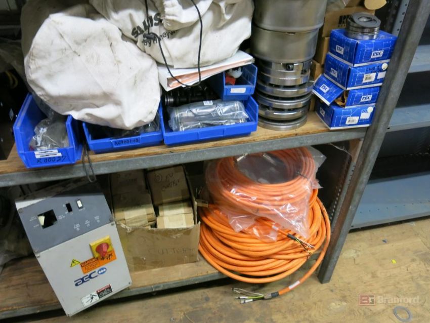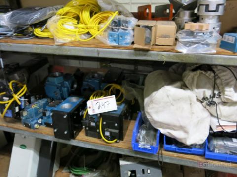 Heavy Duty Rack w/ Contents Incl But Not Limited To: Servo Motor Connector Cables, Valves, Lug Joy Joints, Motor Drives, Uni Drives, Drive Connecting Cables, Display Screen, Other Industrial Related Items - Please Inspect