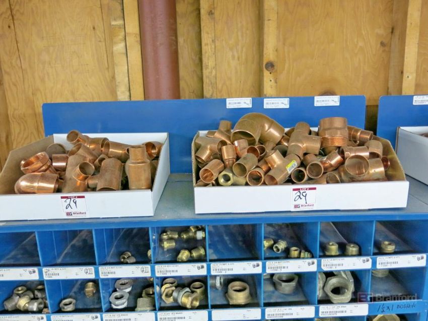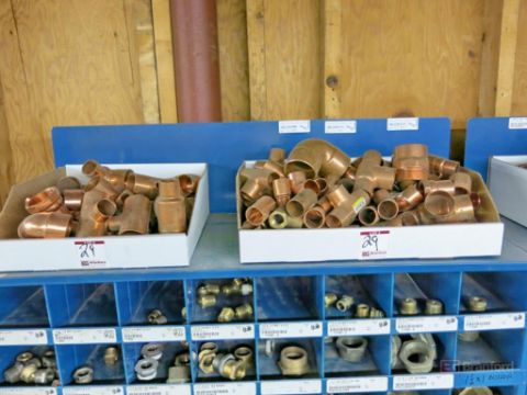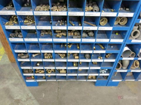Multidrawer Small Parts Bin w/ Contents Incl But Not Limited To: Brass Ball Valves, Copper Pipe Fittings, Brass & Bronze Pipe Fittings, Cast Iron Pipe Fittings, Other Industrial Related Items - Please Inspect