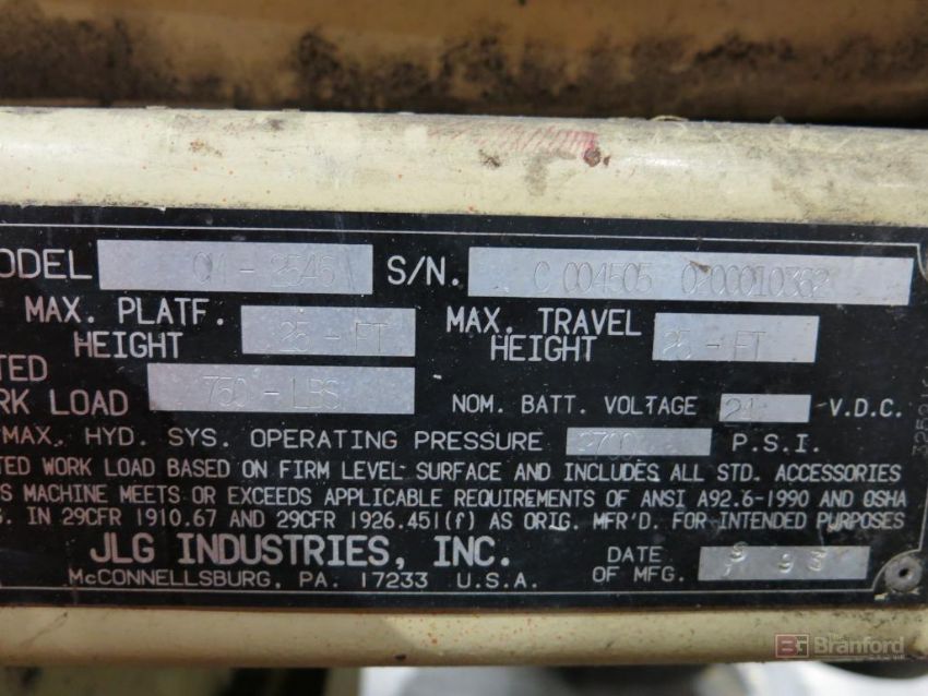 JLG Commander Scissor Lift Model CM-2546, Max. Height 25', Max. Work Load 750-Lbs, S/N C004505 0200010362, w/ Built-In Charger; NOTE This Item Is Late Delivery at End of Removal – Auctioneer Will Notify Buyer When Available