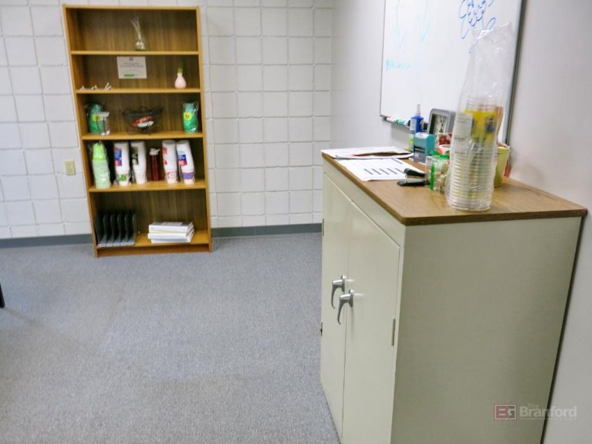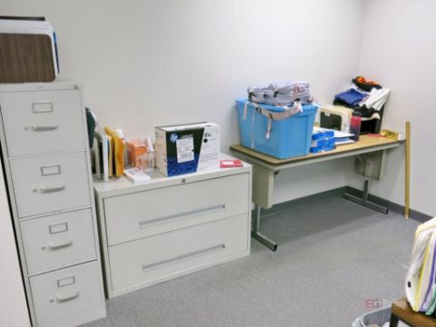 { Group of lots: 368, 369, 370, 371, 372 } Contents of Office Incl Desk w/ Left Return, 2-Door Metal Cabinet, 4-Drawer Vertical File Cabinet, 2-Drawer Horizontal File Cabinet - Please Note: Contents in Office Not Incl, Furniture Only!