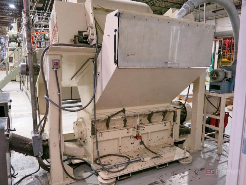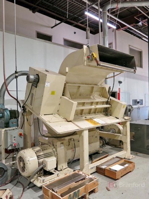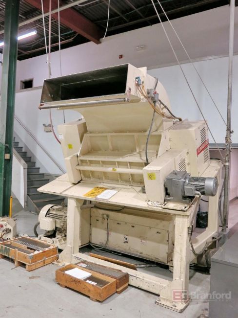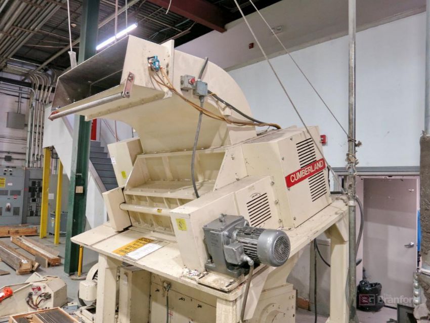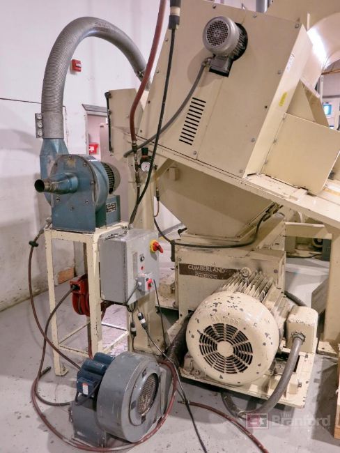 Cumberland 56T 75-HP Sheet Granulator, S/N 84000 Crusher Rolls, 14" x 56" Power Infeed Chute, 20" x 56" Back Infeed Chute, w/ Stirling Model 5003 1-1/2-HP Discharge Blower; Sonitrol Speed Controller
